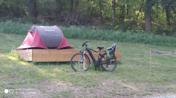 L’équipement proposé est complet : 3 plateformes pour la tente, des tables, une douche (froide) et des toilettes, un point d’eau potable.